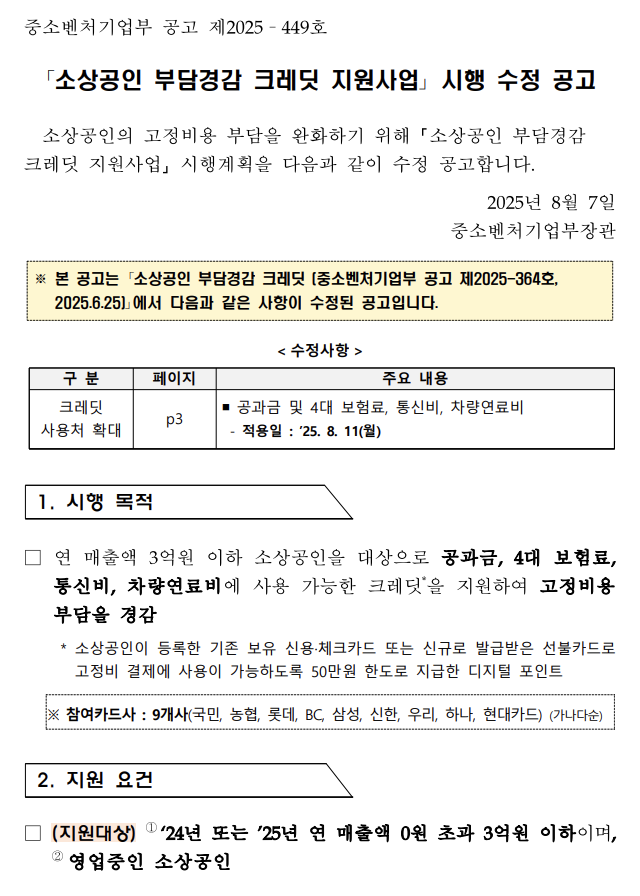 2025년, 정부는 소상공인의 고정비용 부담 완화를 위해 ‘부담경감 크레딧’ 제도를 시행 중입니다. 연매출 3억 원 이하의 소상공인이라면, 최대 50만 원 상당의 디지털 크레딧을 받아 각종 공과금 및 생활 비용에 활용할 수 있습니다.